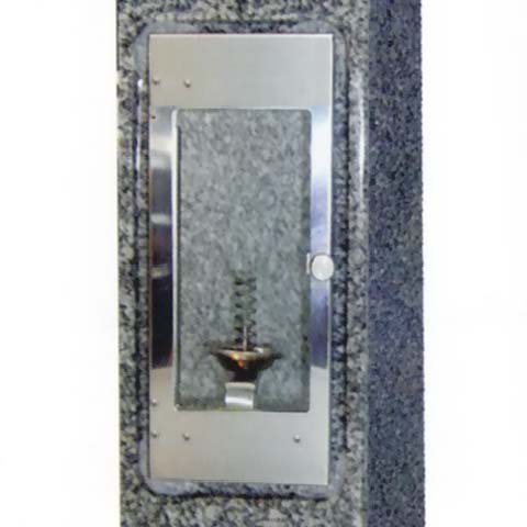 お墓用に使用される灯明(ローソク立て)です。 扉は下側から上へと開きます。扉が開いた時もバネの力で開いた状態が保持されますので扉から手を離してローソクを立てられます。 ローソク立部分も扉に連動して手前に出てきますのでより簡単にローソクを立てられます。 風防は耐熱ガラスを使用して美しく末永くお使い頂けるガラス風防(ASY−G)とお求めやすい樹脂風防(ASY)の2タイプからお選び頂けます。 ガラス風防、樹脂風防共に風防の交換が出来ますが樹脂風防をガラス風防にガラス風防を樹脂風防に変更する事は構造上出来ませんのでご注意ください。 本体下部には取り付けパイプが取り付け出来る金具が付いてます。取り付け方法は専用パイプ(別売)または専用台石(別売)を使用するか取り付け 金具が入る穴を開けて取り付け金具を埋め込み取り付けする方法があります。 【取付パイプのご案内】 ローソク立「やすらぎ」専用の取り付けパイプで地面に埋めて固定します。転倒防止の為可能な限り20〜30cm角程度のコンクリート基礎を作ってください。 基礎が作れない場合は地中にコンクリートブロックを横に埋めてコンクリートブロックの穴を利用してパイプを差し込みコンクリート等で固定してください。 本体下部にあるパイプ取り付け金具にネジが付いていますのでパイプを差し込みネジを締めて本体を固定してください。 【専用台石のご案内】 ローソク立「やすらぎ」専用の台石で台石の中心に本体底部のパイプ取付用の金具が入るサイズの穴が開いていますので本体を差し込むだけで設置出来ます。 簡単に抜き差し出来ますので状況によりコーキング等で固定してください。 【交換用樹脂風防について】 樹脂風防は古くなって曇ったり割れてしまった際に交換が可能です。 右側・背面の交換は現在付いている古い風防の下部中央にある溝にマイナスドライバー等を入れてストッパー金具を押し下げるか樹脂風防を上側に押し上げる 要領で手前側に取り外します。取付の際は新しい風防の上部を先に入れて下部をパチンと音がするまで押し込みます。(状態により音はしない場合があります) 左側の交換は右側・背面と同じですが上記の作業前に前扉に繋がっているバネを外してください。(風防を交換後に必ずバネを元の様に取り付けてください) 前扉の交換は先に左側と繋がっているバネを取り外します。現在付いている古い風防の上部2か所のネジを外して新しい風防と交換します。 交換後、最初に外したバネを元の様に取り付けます。取付の際は力を入れすぎて風防を割らないようにご注意ください。 また、バネを外さずに作業されますと思わぬ事故の恐れがありますので必ずバネを外した状態で交換を行ってください。 本品にはにはネジは付属しておりませんのでお使いの本体に付属のネジを再利用してください。 取付の際は力を入れすぎて風防を割らないようにご注意ください。 ※台石は受注生産(納期約4週間)となりますので「代金引換」はご利用頂けません。 ※樹脂風防用交換保守部品は各1個単位です。複数個所を交換する場合は交換分の枚数をご注文ください。 【材質】 本体・取付パイプ:18−8ステンレス ASY風防:樹脂 ASY−G風防:耐熱ガラス 台石:石材(AG−98) |